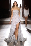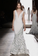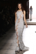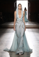При этом каждый сезон Тони Уорд предлагает и какую-то новую — и всегда нейтральную и традиционно красивую, как и сама коллекция, — концепцию, не ограничиваясь просто россыпями кристаллов. На этот раз он, по собственным словам, пытался передать в ткани движение воздуха. Отсюда и завитки волн на платьях, и цветовая гамма: от нежно-голубого до серого, плавно переходящего в светло-салатовый и сиреневый.