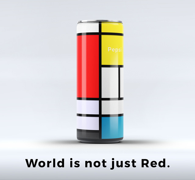 Андреа Саламино приспособил знаменитую геометрию голландского художника Пита Мондриана к дизайну банки Pepsi — получилось жизнерадостно и очень выразительно. Кстати, живописный код Мондриана на что только не перелагали: делали и одежду (вспомнить хотя бы платья Ива Сен-Лорана), и мебель, и даже архитектурные сооружения, — но на жестяной таре знаменитого напитка цветные прямоугольники голландца оказались впервые.
