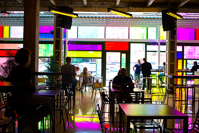 Строящийся радужный фасад Campus_Tanzbar в двух шагах от редакции Buro 24/7 давно вызывал интерес и желание заглянуть внутрь. За новый проект, который, несомненно, разнообразит ежедневный рацион большей части работников старейшего текстильного предприятия на Трехгорке, взялся Всеволод Щербаков — создатель клубов First в Москве, Риге и турецком Кемере, Famous club и Vanilla Ninja.