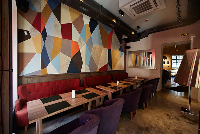 Дизайн интерьеров Goose Goose и двухуровневого Bar27 плавно перетекает из одного в другой: большие деревянные столы, английские винтажные кресла и напольные осветительные приборы, словно в кино, кирпичная кладка стен в сочетании с абстрактными графическими мотивами Пита Мондриана и, главное, много свободного пространства.