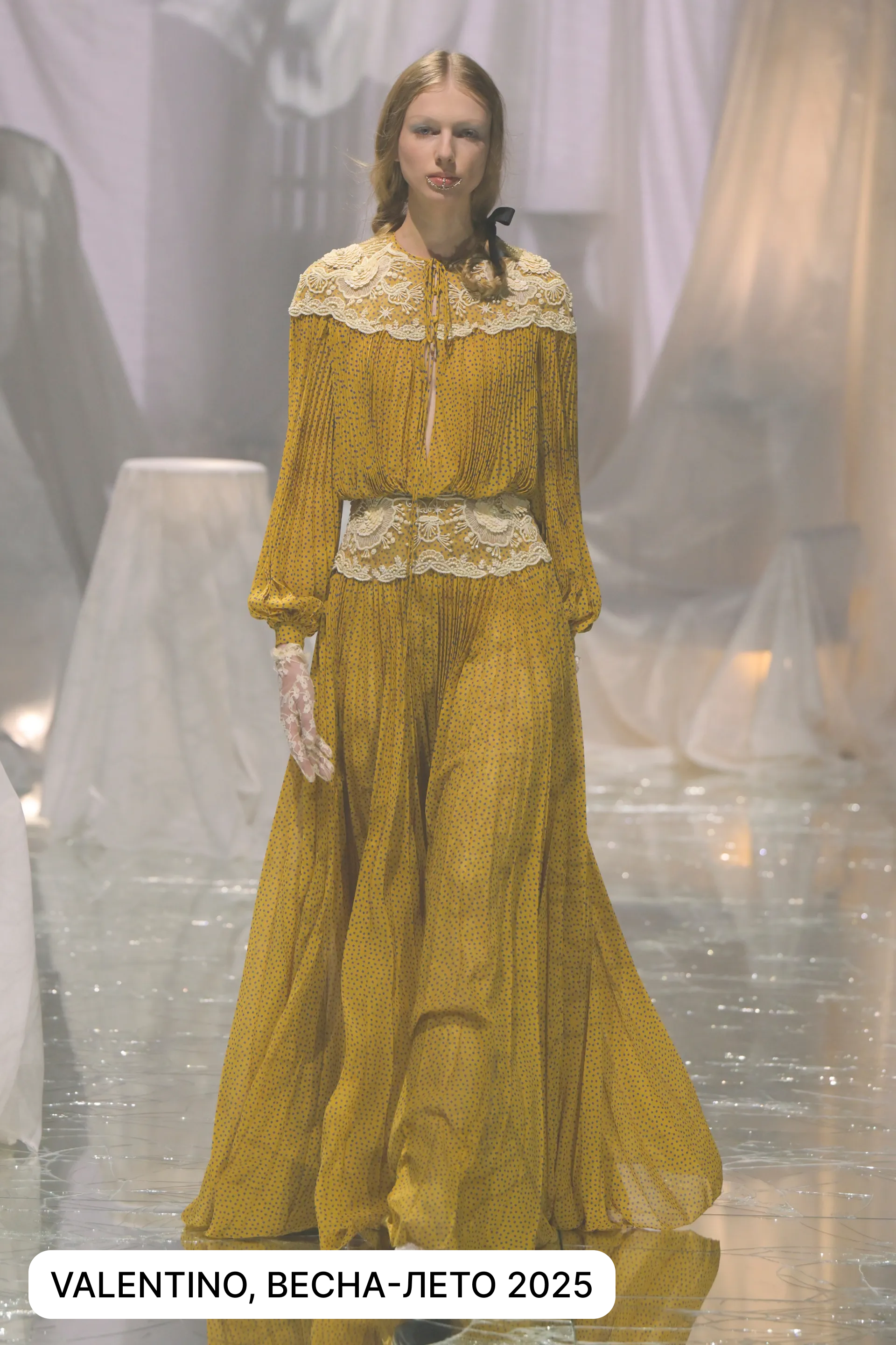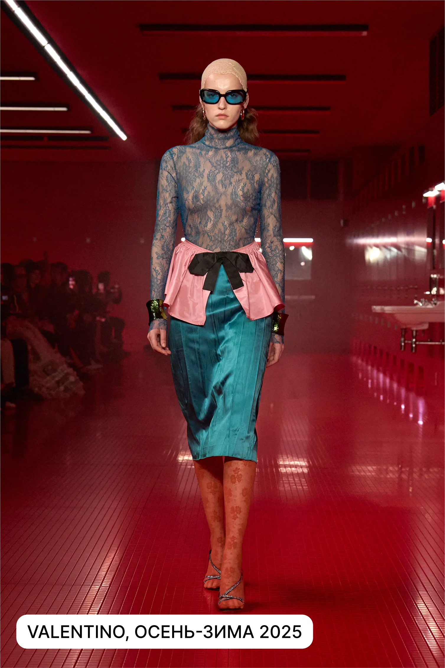 В сезоне осень-зима 2025 у Евстратовой тоже был только один показ, дебютный, и тоже Valentino Алессандро Микеле. «Это сотрудничество было для меня мечтой, и шоу вышло великолепным — от локации и концепции до самих образов», — рассказывает Софи. В работе ее больше всего привлекает возможность путешествовать и участвовать в интересных проектах, а в списке желаний среди брендов главенствует Maison Margiela и Saint Laurent.