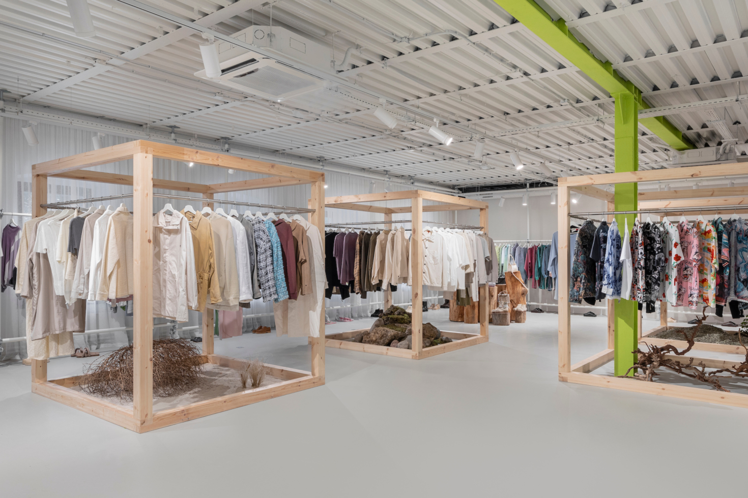 Вешалки в технике шибари, камни и мох — как устроен обновленный второй этаж магазина Peak