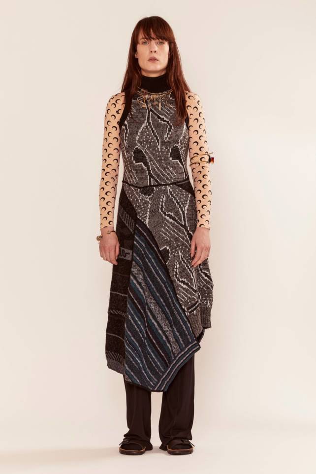 Вещи буквально собираются по кусочкам. Габриэла Херст в дебютной коллекции для Chloé задействовала оставшиеся ткани предыдущего дизайнера Наташи Рамсей-Леви — сразу узнаются принт с лошадками, а также работа художницы Риты Акерман, с которой сотрудничала Наташа. Марка Chopova Lowena работает с дедстоком из Болгарии. Marine Serre использовал для коллекции старые шелковые платки, флисовые одеяла, ковры, шарфы в клетку тартан и футболки с дурацкими принтами. На одной из полученных вещей мы разглядели советский гимн.