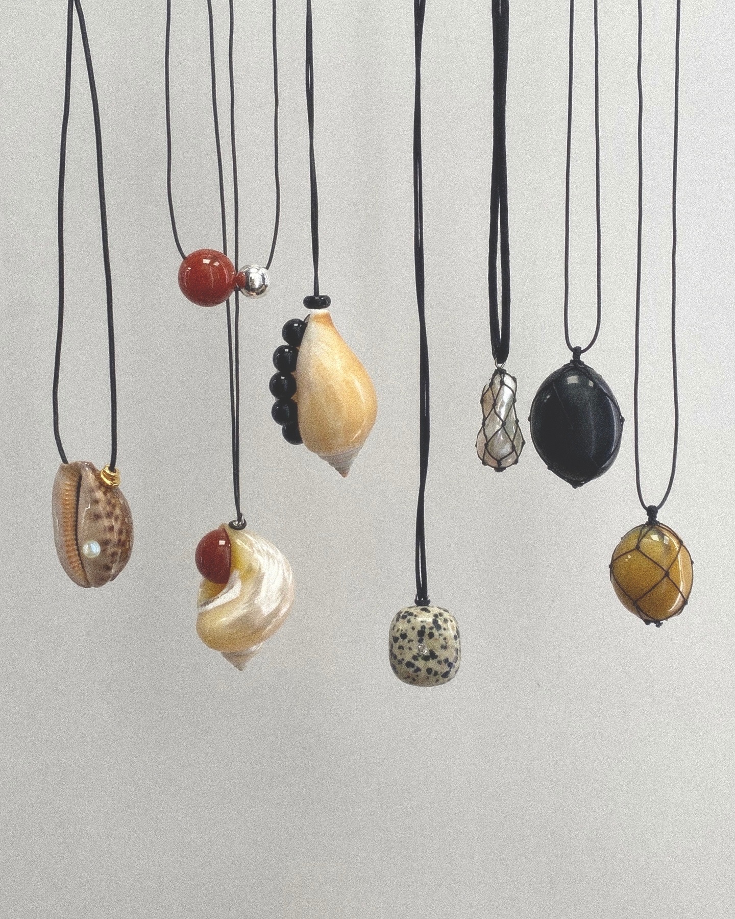 Сама Дина называет свои украшения «созданные морем», а в основе всех изделий, по ее же словам, лежит образ «офисной русалки». «Это повседневные украшения из жемчуга и натуральных камней с определенными деталями. Например, крупные жемчужины, оплетенные нитями в технике макраме, или колье в японской технике, собранные через узелок, отполированные ракушки и самоцветы на черных шнурках». То есть все те украшения, которые можно смело миксовать со строгим дресс-кодом, а потом в них же отправляться на пляжную вечеринку. Причем вне зависимости от времени года и текущих трендов.