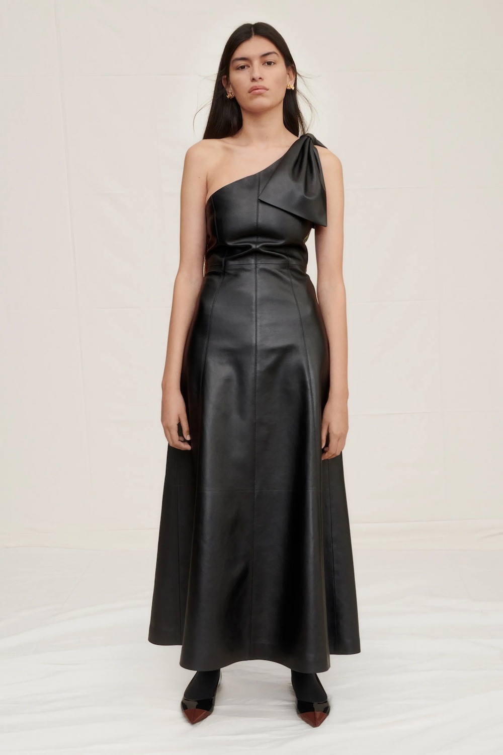 Согласимся, пока московский август не для изделий из кожи, но сани предпочитаем готовить летом. Для первой половины осени выбирайте лаконичные платья в черной коже — хорошие референсы нашли у Габриэлы Херст. Первый — комбинация — в ее последней коллекции для Chloe, второй — платье на одно плечо — в собственном Gabriela Hearst. Тоже платье, но уже футляр с пикантной проймой на груди — дело рук Мэттью Уильямса, а самый модный однобортный пиджак — Кэтрин Хольштейн из Khaite. Поддержать тренд на барбикор (на случай, если еще не утомил) можно по образу и подобию Виржини Виар. Слагаемые просты: кожаные шорты плюс боди плюс гетры и кеды (начес — по желанию). В Tibi ищите пупырчатую юбку-карандаш, у Tod’s — кожаное все в ирисовом, а у Louis Vuitton — «костюм ихтиандра» с жабрами (тоже кожаными).