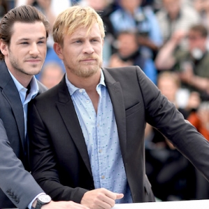 Гаспар Ульель, Жереми Ренье и Леа Сейду на фотоколле драмы Бертрана Бонелло \"Сен-Лоран\"
