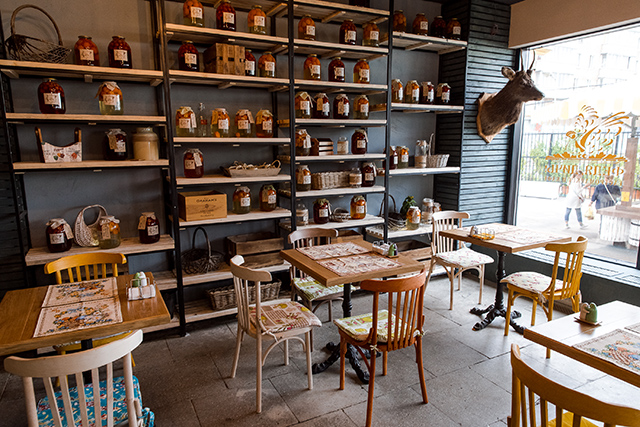 Гастромаркет (здесь продают соленья, варенья, компоты и полуфабрикаты вроде оссобуко или гусиных ножек, которые легко превратятся в приятный домашний ужин) и бистро открыл Сергей Ерошенко, владелец и шеф ресторана «Честная кухня». Известный своим пристрастием к охоте, в меню он сделал акцент на дичь всех видов и родов: суп из оленя, томленая грудка дикой утки с имбирно-яблочным пюре и соусом из красного винограда, брускетта с паштетом из дичи и желе из брусники, пельмени из лося с вологодской сметаной, слабосоленая нерка с таежной брусникой должны сделать дикие продукты доступными всем.