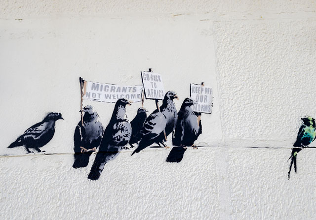 На выставке будет представлено более 80 работ художника, в том числе и его самые знаменитые граффити вроде «Девочки с шаром» и «Смейся сейчас»