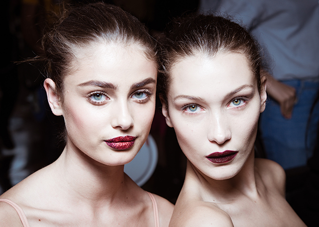 Эти винные губы, покрытые мерцающим глиттером, мы видели в начале июля, когда МакГрат красила моделей на показе Atelier Versace Haute Couture 2016—2017. Лучше всех их тогда показала Белла Хадид. В ее исполнении такие губы казались чем-то вполне себе жизнеспособным в условиях «неподиума».