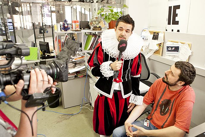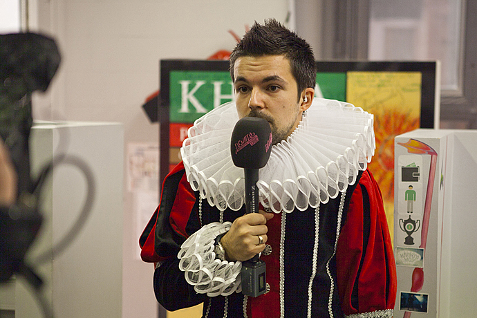 В самой студии одетый в маскарадный костюм Саша Филипенко (Роман Романович) проводит мини-интервью с коллегами из пиар- и других отделов. Наталью Синдееву местный Крис Рок также не обделил вниманием.