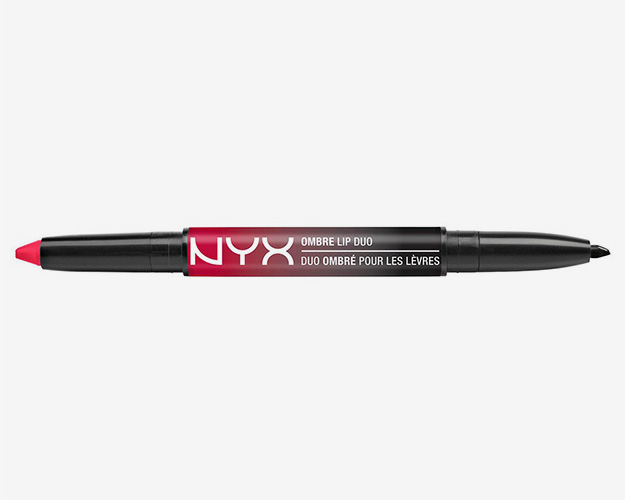 NYX (который, кстати, выпускает даже косметику для веганов) предлагает создать модный эффект омбре на губах. Ombre Lip Duo — двусторонняя помада-карандаш, где с одной стороны — классический красный цвет помады, а с другой — черный карандаш. Такая гремучая смесь цветов позволит создать красивый темно-вишневый градиент. Глубину оттенка и границу перехода регулируете только вы, а черный карандаш можно использовать еще и для макияжа глаз.