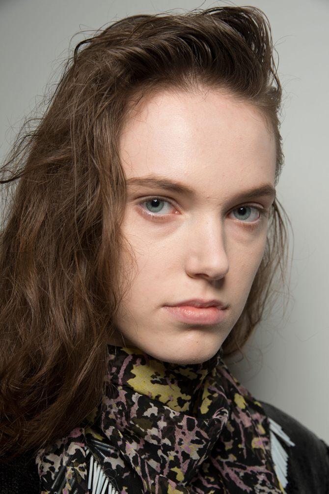Склеенная текстура напоминает более ленивый вариант beach waves, но принцип тот же. Влажные или сухие волосы нужно обработать текстуризатором или спреем на основе морской соли, а затем зафиксировать пастой или лаком. Можно уделить внимание нескольким прядям, например только верхним, или создать склеенную текстуру у линии роста волос.