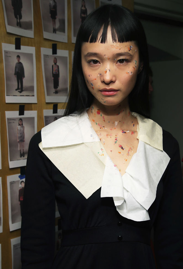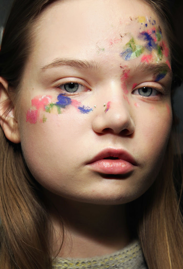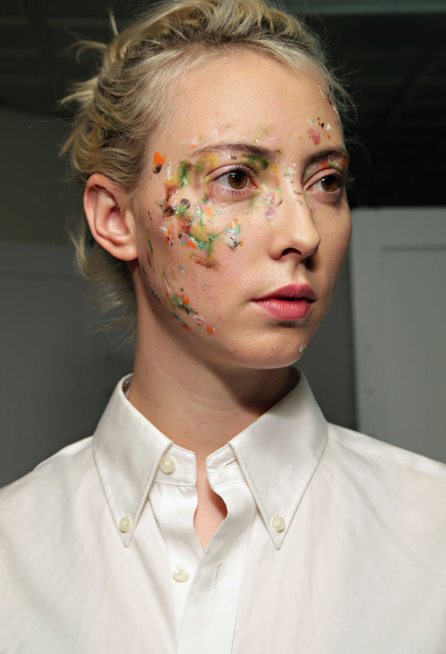 Отсутствие гендерной принадлежности как таковой, ода асимметричному крою и необычным материалам являются нормой еще с самого первого показа Майка Экхауза и Зои Латта, который прошел в феврале 2012 года. Но на этот раз визажисты американского авангардного бренда взяли акварель и разукрасили лица и тела моделей.