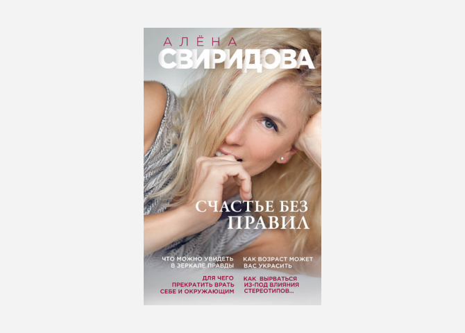 Когда-то Алена Свиридова была суперзвездой и звучала из каждого утюга, но сейчас те времена уже надо гуглить. Зато год выхода ее книги внезапно свежий. Содержание посвящается принятию тела и возраста (Алене 58). Главная мысль в том, что возраст — не трагедия, и это, конечно, правильно и прогрессивно звучит. Вопросы только к научности подхода — зрелые женщины вряд ли узнают из книги о важности гормонально-заместительной терапии, а весь сюжет скорее самоироничные рассуждения автора.