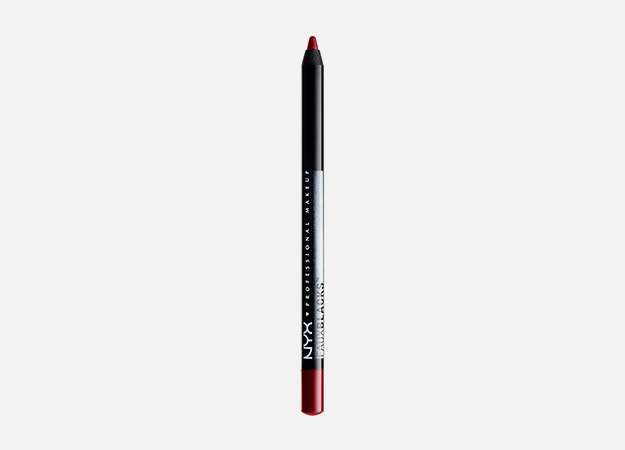 Для выразительности ресницы можно прокрасить черной тушью, но визажист решил их не трогать. На губы нанесите матовую помаду или карандаш в том же красном оттенке, что и карандаш для глаз.