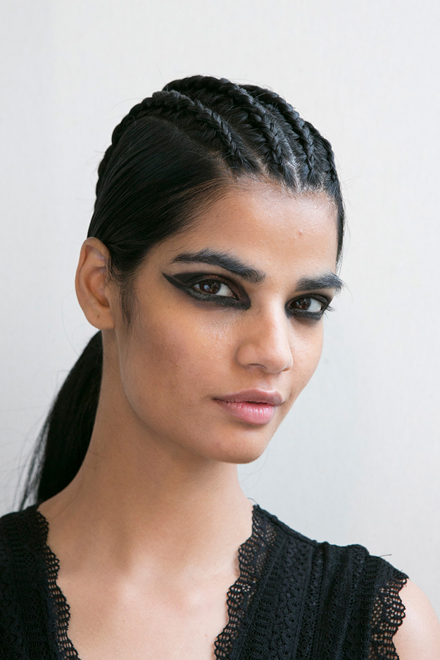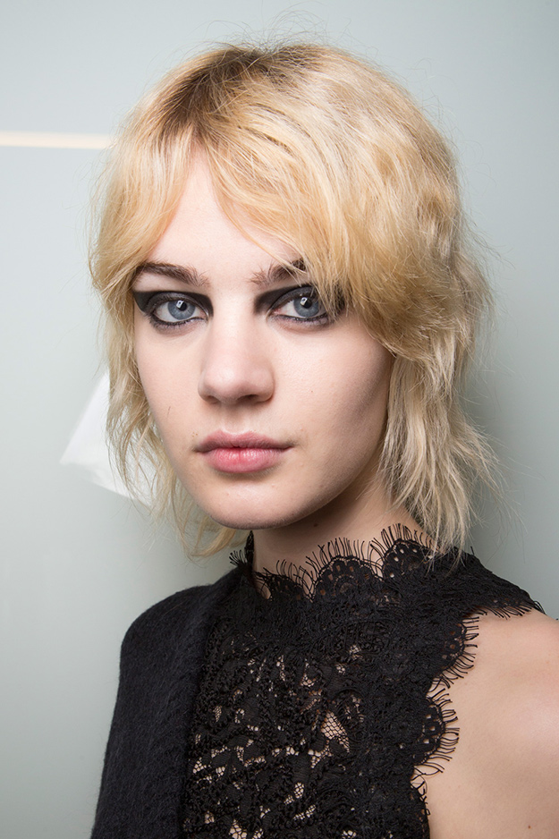В этом сезоне визажисты решили показать нетривиальную альтернативу классическим ровным стрелкам — широкие и неровные линии. На показе Prabal Gurung стрелка поднялась вверх к неподвижному веку, у Marni линия на нижнем веке была нарисована слегка рваной, как если бы ее рисовали не подводкой, а тушью для ресниц. Для показа Versace визажисты сделали моделям макияж в стиле гранж в виде широких угольных стрелок.