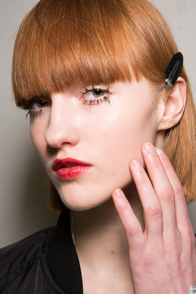 Моделям с показа MSGM визажист Ребекка Баттерворт решила сделать нарочито длинные и небрежно накрашенные ресницы на нижнем веке. Помимо праймера и нескольких плотных слоев туши она использовала накладные ресницы. На показе Jeremy Scott моделям сделали нюдовый макияж со нежно-розовыми румянами, подчеркнув глаза пучками накладных ресниц на нижнем веке.