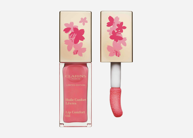 Праздник любования сакурой — это сезонная коллекция Clarins. В ней всего два продукта, но много удовольствия от их использования. Масло-блеск для губ Lip Comfort Oil в новом оттенке 14 Sakura наносите поверх помады или как самостоятельное средство. Спреем Fix Make-up во флаконе с цветочным орнаментом фиксируйте макияж и освежайте кожу в течение дня.