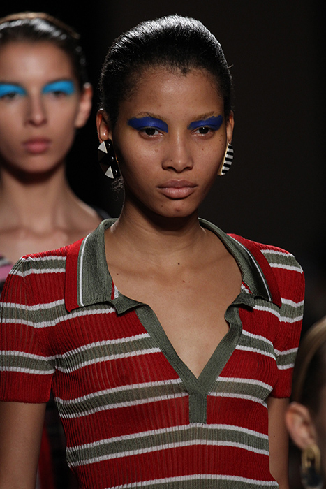 Пик популярности макияжа в синих и голубых тонах пришелся на весну 2016 года. Тени, карандаши и подводки голубых, синих, бирюзовых, ультрамариновых оттенков и цвета индиго встречались практически на всех показах. Наиболее простой в исполнении вариант был представлен на показе Anna Sui: в макияже использовали тени насыщенного синего цвета без градиентов. В образе для шоу Chanel небесно-голубые тени с перламутровой текстурой контрастировали с черным лайнером вокруг глаз. Наиболее простую идею использования голубых теней в повседневном макияже представили на показе Diane Von Furstenberg, а для вечера — Sonia Rykiel, где темно-серые смоки были разбавлены синими бликами.
