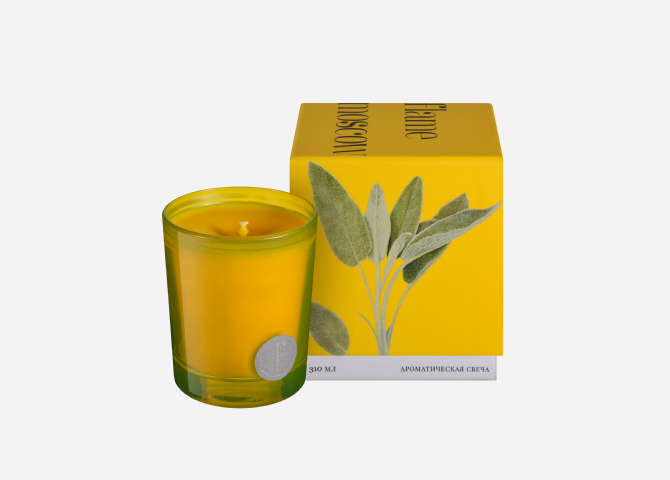 Свечи из осенней линейки выполнены из цветного воска, налитого в стаканы из стекла в тон. Запоминайте, чтобы не перепутать: