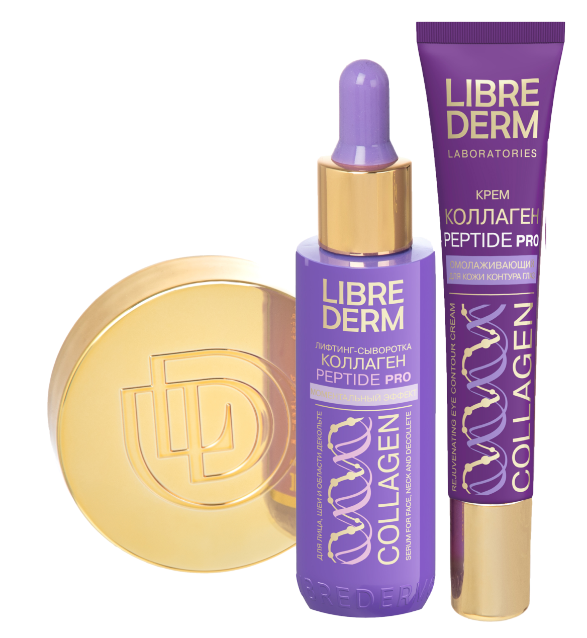 Collagen Peptide от Librederm — полноценная линейка экспертных средств для обеспечения структурной прочности кожи и поддержания ее упругости. В ней есть продукты для основного ухода, интенсивного, очищения и умывания. Средства коллекции содержат дополнительные активные ингредиенты, направленные на омолаживающие действия: уникальная молекула-биомиметик, которая поддерживает баланс коллагена в коже, матрикины Pal-GHK и Pal-GQPR, стимулирующие его синтез, а также высокоактивный экстракт микроводорослей для мгновенного и длительного лифтинг-эффекта, витамины B3, B5, B6, C, E и масла ши, миндаля для интенсивного питания и смягчения кожи.