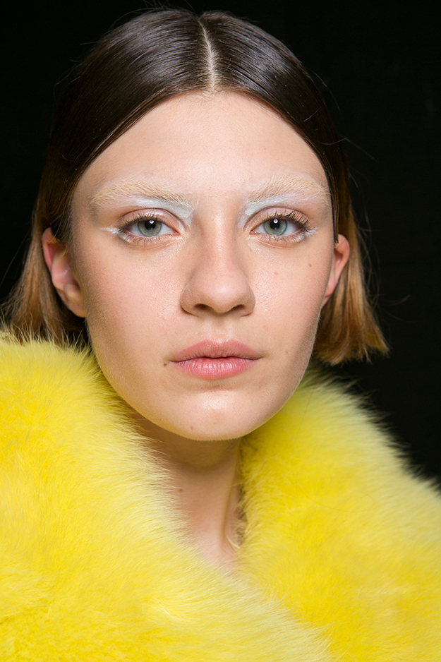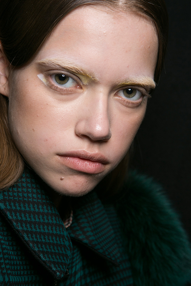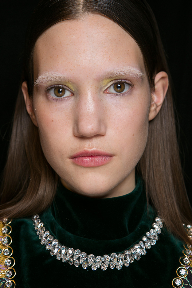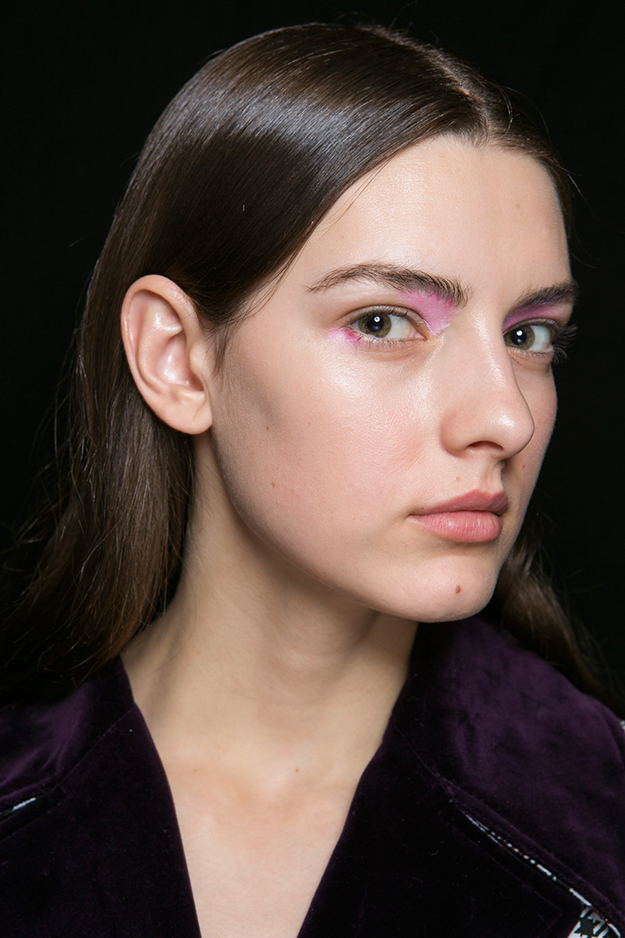 Осенне-зимний образ с шоу Mary Katrantzou — абсолютный минимализм в прическах и буйство красок на лице.