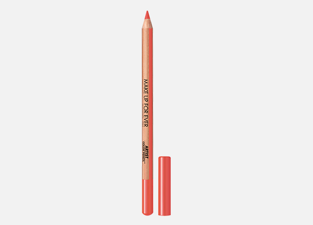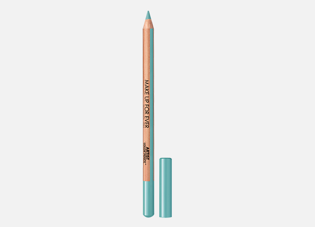 Заметен интенсивный румянец, который визажист нанесла не только на яблочки щек, но и на веки для гармоничности. Для макияжа глаз удобнее всего использовать цветные карандаши, но подойдут и подводки. На верхнем веке стрелка начинается от середины и идет к внешнему краю с утолщением. На нижнем веке нужно нанести цвет посередине, слегка растушевав.