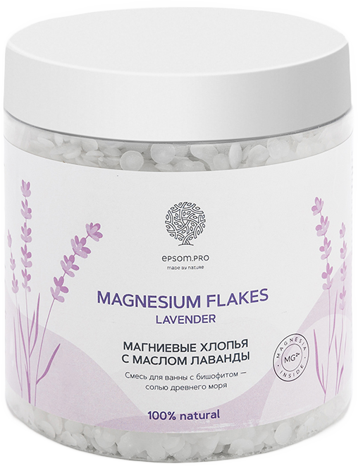 Ванна с магниевыми хлопьями помогает снять напряжение в мышцах, отпустить негативные мысли и успокоиться, а если принимать такую ванну вечером — еще и улучшает качество сна. Основа состава хлопьев — эфирные масла (лаванда или эвкалипт) и минерал древнего моря, добываемый на глубине 2–4 км. Кроме магния (97%) он содержит еще 70 микроэлементов, в том числе железо, натрий, йод.