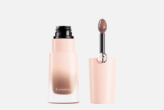 Для эффекта фарфоровой кожи визажист нанесла тон Power Fabric, а доработала кожу консилером. Для макияжа глаз использовался карандаш для губ красного цвета №8. Нанесен он как штрих: от внутреннего уголка глаз к внешнему с пробелом по центру. Верхние ресницы прокрашены черной тушью. На лицах моделей нет румянца и блеска, только скулы подчеркнуты средством для контуринга Neo Nude A-Contour.