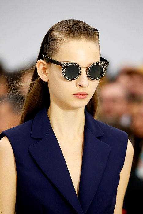 Эффект мокрых волос, зачесанных назад, — то, что нужно для жаркой погоды. Этот прием использовали стилисты на показах Stella McCartney, Salvatore Ferragamo, Sacai. Часть волос можно собрать в низкий хвост или оставить распущенной.