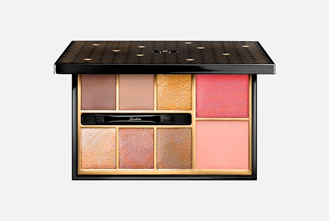 В праздничную палетку Guerlain входят нарядные сверкающие оттенки в золотой гамме. Любой продукт можно наносить во влажной технике, получая эффект жидкого металла. Для макияжа лица — румяна в матовом и перламутровом вариантах разной насыщенности.