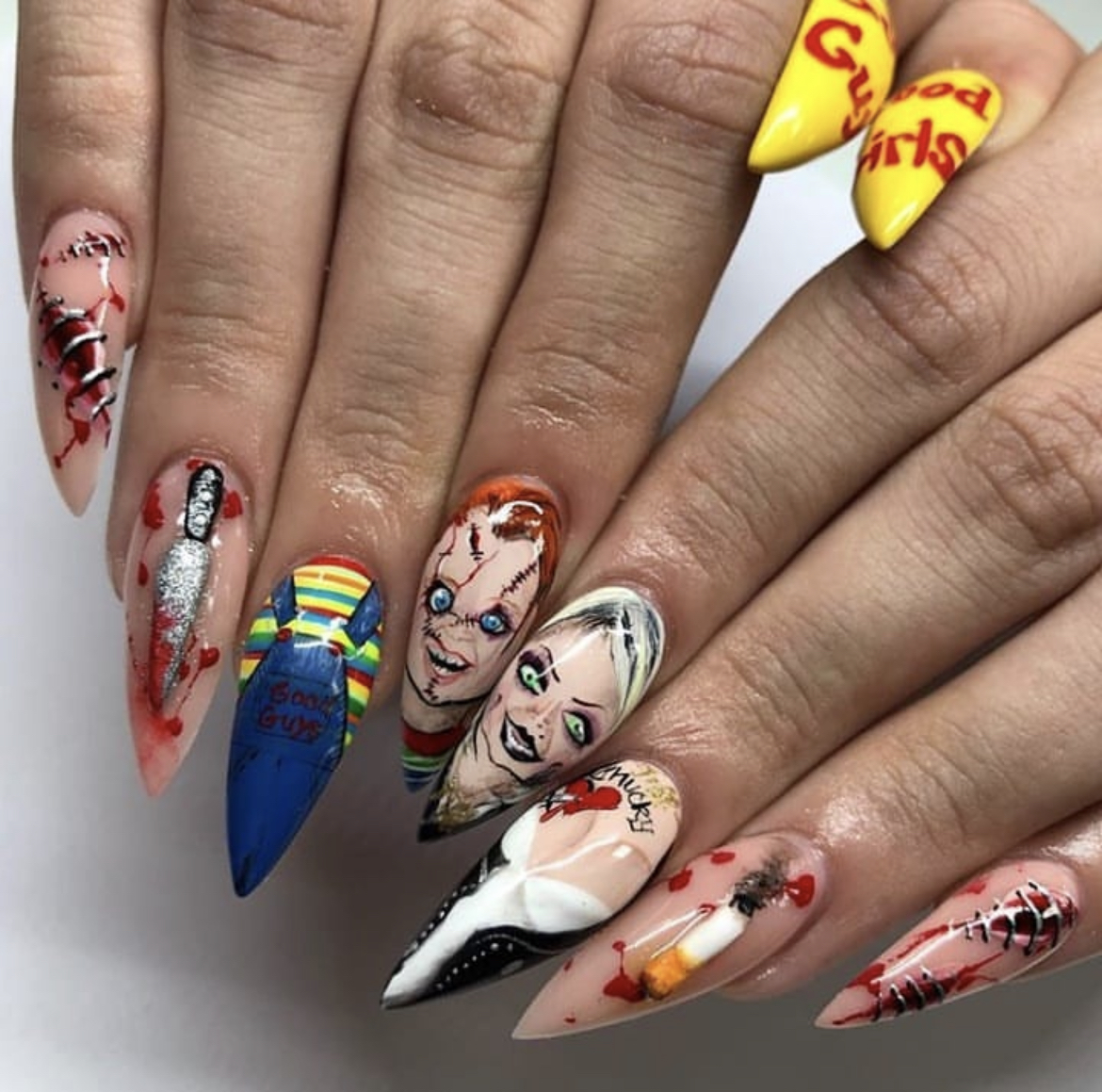 Реалистичный нейл-арт можно считать искусством, и вот тому подтверждение. При таком дизайне ногтей хеллоуинский костюм не понадобится — образ завершен.