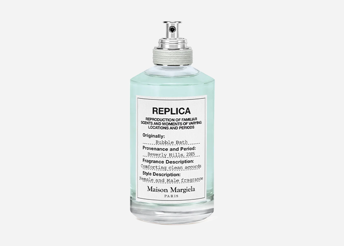В серию ольфакторных воспоминаний «Реплика» парфюмеры Maison Margiela включили реалистичный аромат ванны с пеной и мыльными пузырями. Мускусно-альдегидная композиция с нотами лаванды, жасмина, кокоса — эталон чистоты.