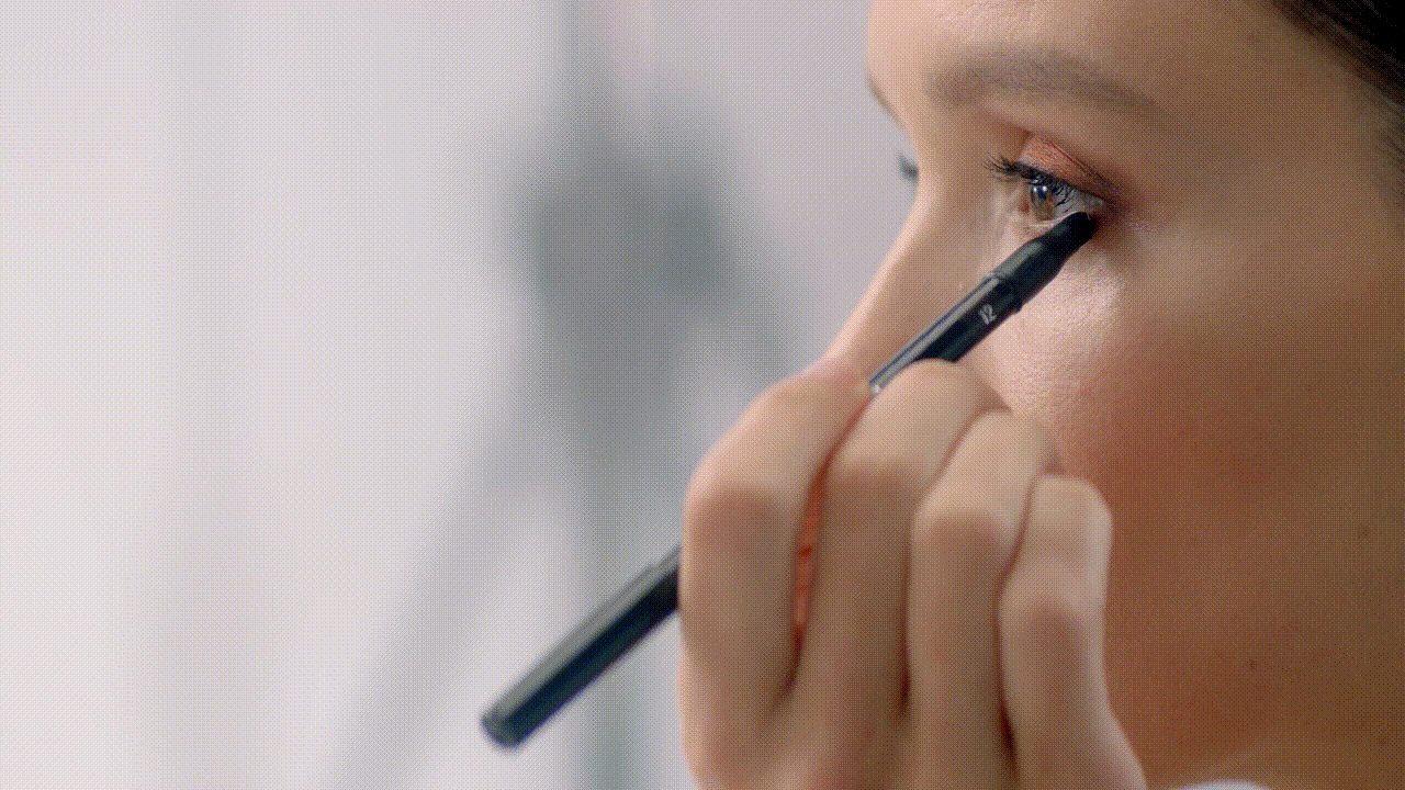 Начните макияж с карандаша для глаз Smooth Silk Eye Pencil — по направлению от внешнего уголка глаза к виску наметьте направление будущей стрелки. Благодаря мягкой и шелковистой текстуре карандаша сделать это легко одним движением руки. Такой прием поможет отточить навык рисования стрелок и послужит «репетицией» перед следующий шагом.