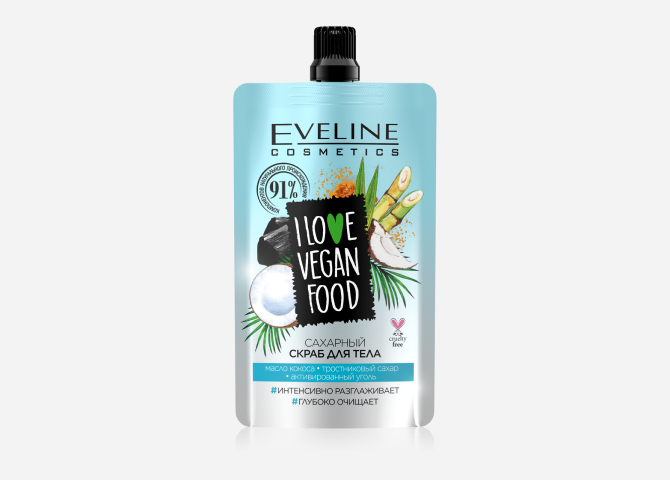 Сахарный скраб для тела I love vegan food, Eveline Cosmetics
