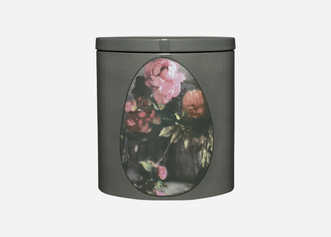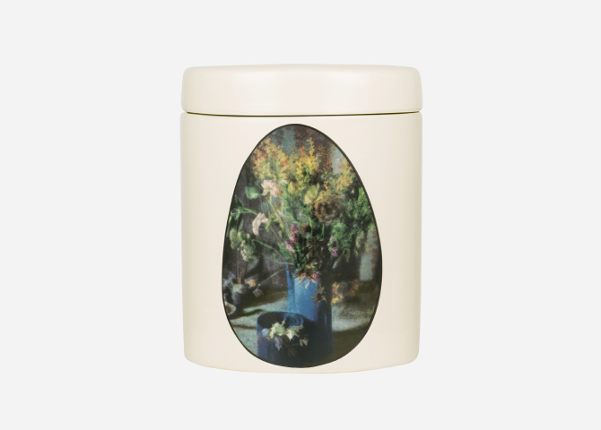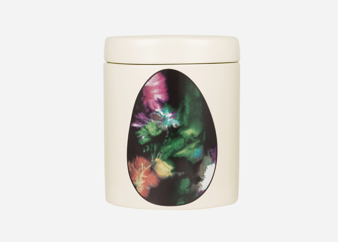 Трем парфюмированным свечам повезло — дизайн их керамических стаканов доверили американскому фотографу Мартину Томпсону. Результат — флористический принт на тему мимозы, пионов, листьев базилика и долек цитрусов.