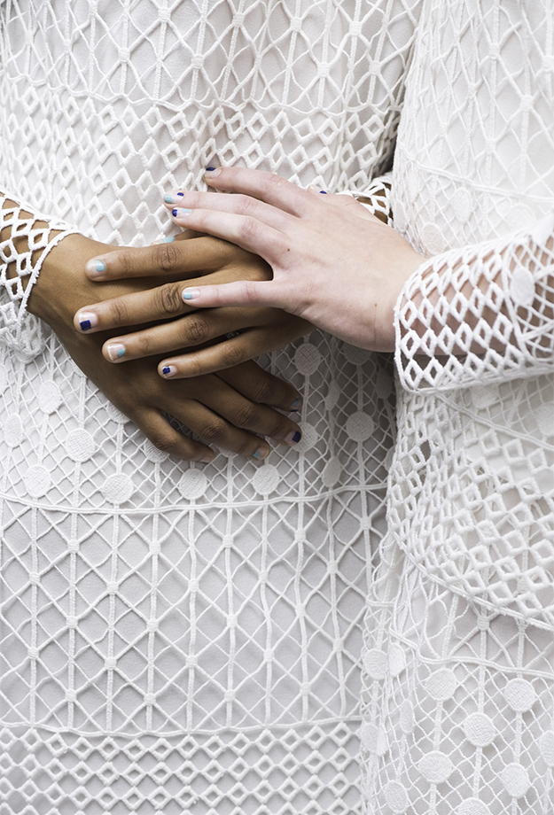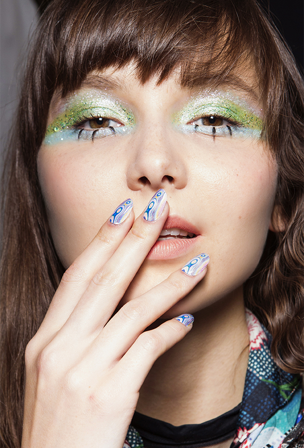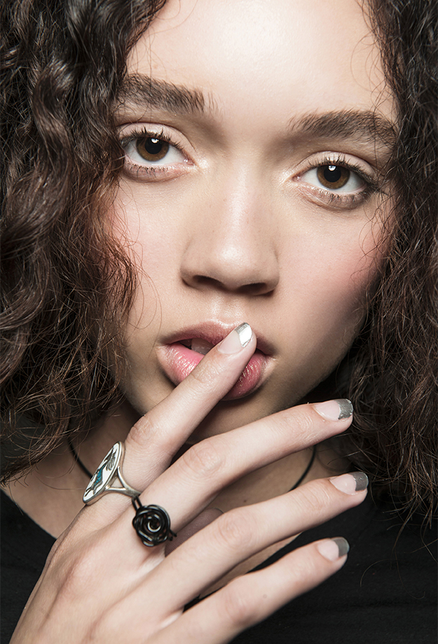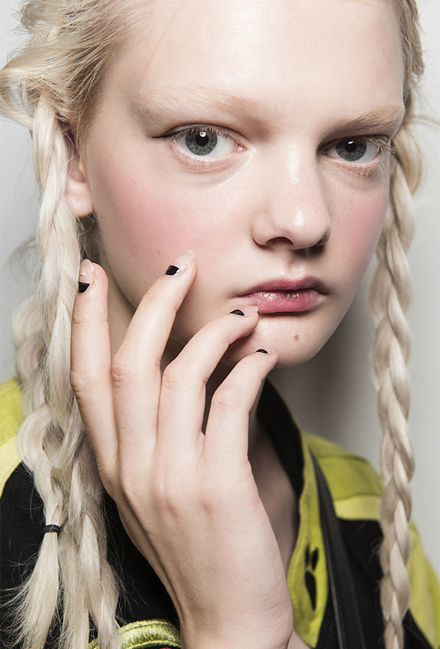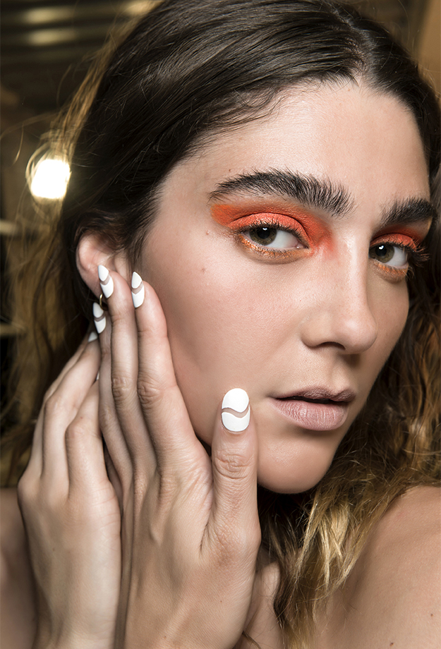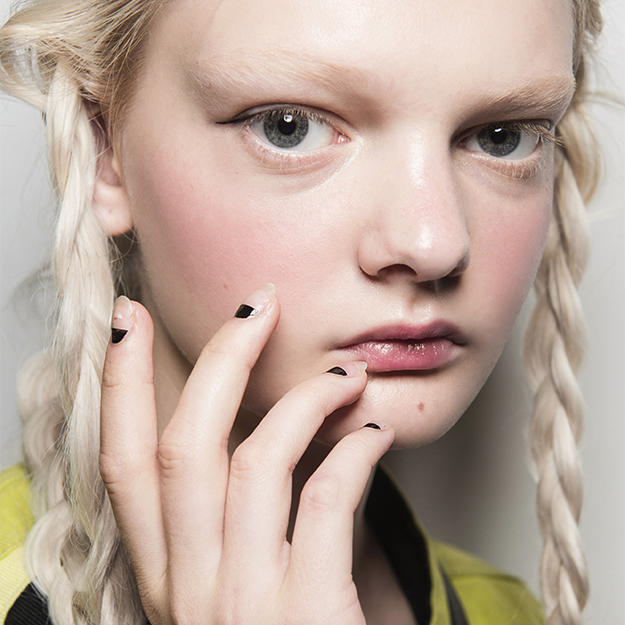 Наиболее красивая идея negative space была продемонстрирована на показе House of Holland: в качестве основы был использован белый лак, а посередине ногтей — незакрашенная полоска в виде волны. Идеи для минималистичного маникюра можно взять с показов 3.1 Phillip Lim или Calvin Luo.