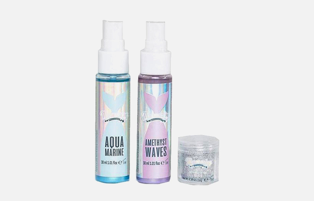 Набор для создания эффекта розово-голубого градиента при помощи двух спреев, к которым отлично прилипают блестки. Средства не фиксируют волосы и не делают их липкими.