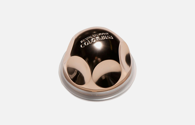 Средство для временного окрашивания в удобном формате шайбы: крышку нужно открыть, а выпуклой частью прорабатывать волосы. Можно прокрасить как всю поверхность волос, так и отдельные пряди. Что касается цвета, то смотрится как золотая краска с показа Schiaparelli Haute Couture в 2015 году.