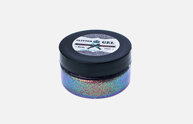 Красивый и плотный по текстуре глиттерный гель с бензиновым переливом имеет довольно темный оттенок, поэтому контрастно и ярко будет смотреться на светлых волосах. Можно наносить и на тело. Смывается все шампунем и гелем.
