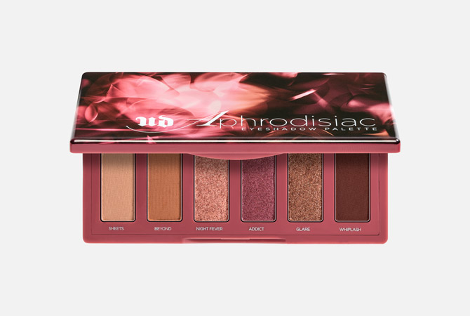 В компактную палетку теней вошло 6 оттенков в розово-золотой гамме, которые будут смотреться красиво с любым цветом глаз. С ее помощью можно создать как смоки, так и макияж для повседневного образа. В качестве базы подойдут 2 первых матовых цвета, для акцентов — следующие 3, а последний матовый красно-коричневый — для создания тени.