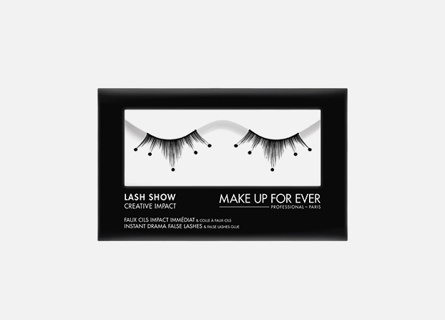 Без накладных ресниц или пучков не обходится ни один показ — это простой и быстрый способ сделать взгляд выразительнее, а образ — ярче. Ресницы разного дизайна можно найти как у профессиональных, так и у декоративных марок. Громоздкие варианты, например с перьями и стразами, можно использовать для вечеринок. В последнее время визажисты манипулируют ресницами нестандартно, например наклеивая их на нижнее веко или используя очень длинные пучки.