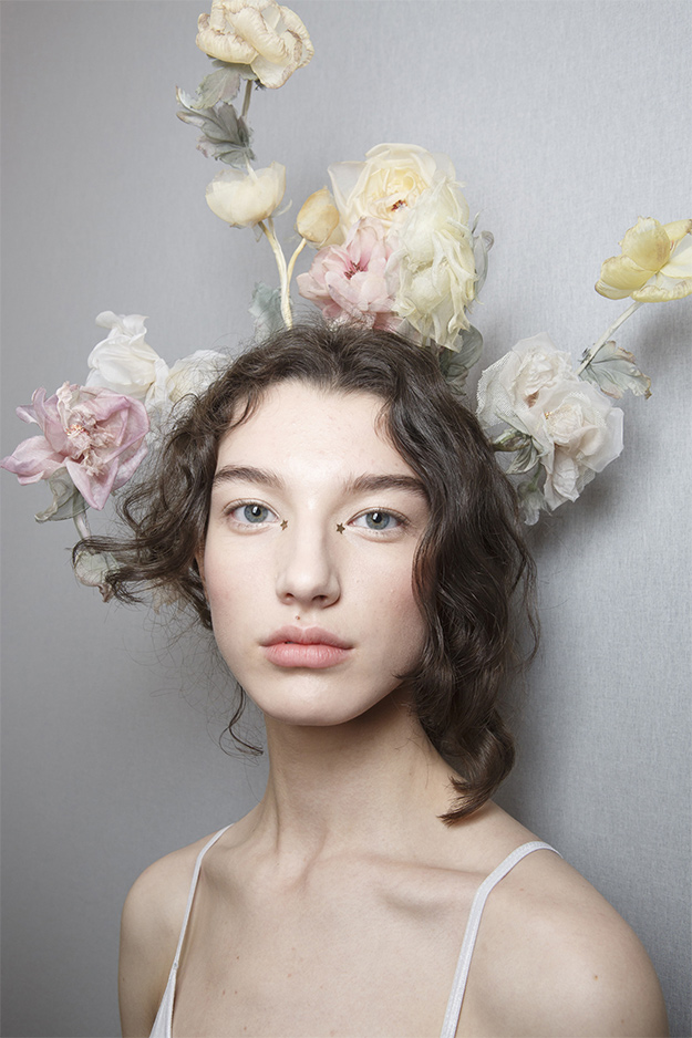 Первый кутюрный показ Марии Грации Кьюри прошел в рукотворном сказочном лесу, поэтому главными его героинями стали нимфы. Длинные волнистые волосы моделей были украшены массивными венками с цветами и перьями. Для создания такой прически необходимо накрутить пряди на плойку и затем аккуратно прочесать их, чтобы получить воздушное, с легким намеком на кудри, облако.