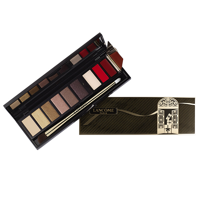 С первого взгляда в мини-коллекции Lancôme обращает на себя внимание продолговатая палетка для макияжа глаз, украшенная золотыми воротами дома Lancôme. Но внутри обладательницу ждет сюрприз: рядом с шестью тенями расположена крышечка, под которой прячутся помады для губ и база для создания модного в этом сезоне эффекта омбре на губах. Еще одним любопытным продуктом серии стал золотой top coat для ресниц.