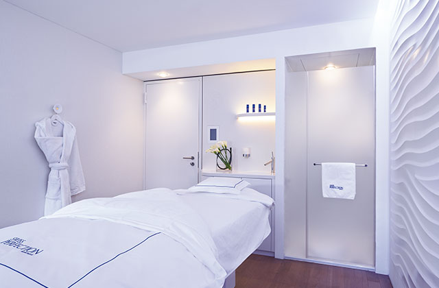 Еще одна зона отведена клеточной косметике Swiss Perfection, эксклюзивно представленной в Clinique La Prairie, на которой и проходят основные процедуры по уходу за лицом. В основе линии — антивозрастные свойства корня цветка ириса, дополненные антиоксидантами, которые воздействуют на кожу на клеточном уровне. Любой уход за лицом начинается с антистрессового массажа шеи и плеч, многоступенчатого очищения и глубокого массажа лица. В процедуры для тела обязательно входят мягкий пилинг, который подходит даже чувствительной коже, маска, которую нагревают с помощью специального одеяла, и расслабляющий массаж ног.