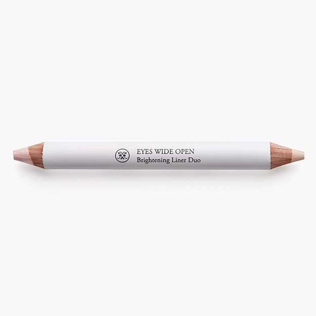 Двусторонний карандаш-хайлайтер — универсальное средство для того, чтобы «подсветить» слизистую и уголки глаз или контур губ. С одной стороны карандаш нежно-розового цвета, с другой — светло-бежевый. Он безопасен для таких деликатных участков, как глаза и губы, благодаря воскам и касторовому маслу в составе. Это масло содержит различные жирные кислоты (например рицинолеиновую), которые обладают смягчающим действием и подходят даже для самой чувствительной кожи. Карандаш легко ложится на веко, но даже если вы промахнулись мимо слизистой и попали в глаз, карандаш не вызывает жжения.