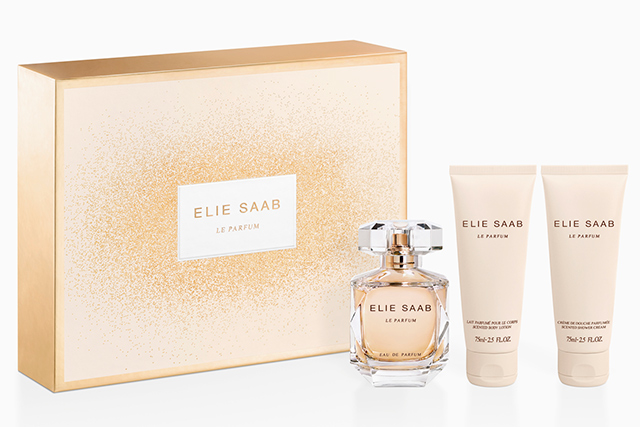 Elie Saab выпустил набор, главным героем которого стала парфюмерная вода Le Parfum с нотами флердоранжа. Сердце аромата раскрывается сочетанием жасмина с пачули, компанию которым составляют белые цветы и кедр. В дополнение к парфюму идут молочко для тела и крем-гель для душа.