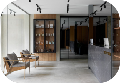 Одним из главных преимуществ Quantum Clinic в Хамовниках (помимо широкого ассортимента услуг и профессионалов своего дела) является стильный интерьер. Цвета темного дерева, акценты из мрамора и стекла погружают в атмосферу очень дорогого SPA и настраивают на нужное настроение заботы о себе и своем внутреннем состоянии. Пространство зонировано, что дополнительно создает ощущение камерности и приватности. Плюсом — широкий ассортимент услуг: от уходовых процедур за лицом (инъекционная и аппаратная косметология) до различного вида массажей и обертываний.
