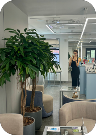 Во всех салонах Дмитрия Федяева (за плечами еще мужской проект — парикмахерские «Пять восьмых») нельзя не отметить вкус, с которым сделан интерьер. В той локации, что оказалась я, на ЗИЛе, — высокие потолки (настолько, что салон занимает два яруса), много света из огромных окон, натуральные материалы, зелень и предметы искусства в декоре. Во входной группе есть место, где можно выпить кофе и дождаться записи к мастеру. К слову, услуги здесь оказывают самые разные — стрижки, уход, сложные окрашивания (хотела добавить бликов, но не рискнула, отложу до следующего визита), маникюр, педикюр, макияж, лазер и даже массаж.