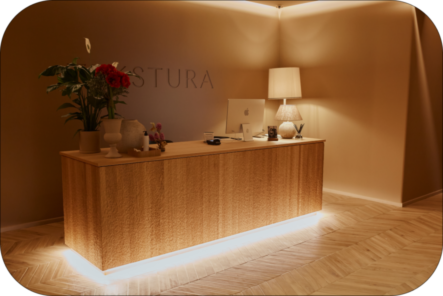 Если вам посчастливится оказаться в южных краях, то смело отправляйтесь в ростовский SKIN by Bodium! Одно из самых красивых бьюти-мест города, находящееся в историческом центре. Попадая внутрь, сразу получаешь удовольствие от визуала — в пространстве и дизайне продумана каждая деталь. При входе есть зона ожидания, где гостей угощают чаем и кофе, а также предлагают косметологические продукты, которые можно попробовать на процедурах и приобрести. Что важно: каждому клиенту перед процедурой приносят заполнить анкету о желаемом результате.